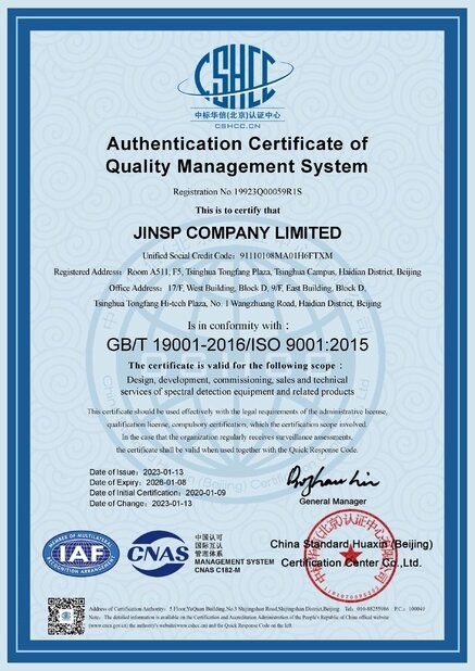 The technology owned by JINSP has won the National Science and Technology Commission's Scientific and Technological Achievement Appraisal Certificate and the China Patent Excellence Award, and related products have been obtained has won authoritative awards such as the Geneva International Invention Award, the Beijing New Technology and New Product Certificate, and the "Innovation Achievement Award" of the Zhu Liangyi Analytical Instrument Innovation Award. In addition, JINSP participated in the drafting of several national and international standards, including participating in the drafting of an international standard as the only participating unit in China IEC 63085 International Standard: System of spectral identification of liquids in transparent or semitransparent containers; Drafting of two national standards: GB/T 41086-2021 "General Technical Requirements for Safety Inspection Equipment for Hazardous Chemicals Based on Raman Spectroscopy", GB/T 40219-2021 "General Specification for Raman Spectrometer".